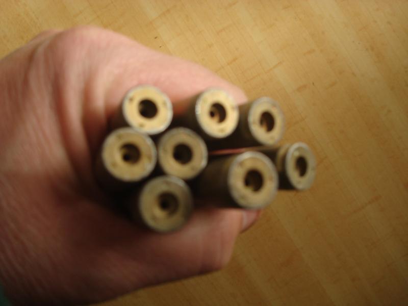 Cartuchos inertes de manipilación de 30-06 del Arsenal de Frankfort (Philadelphia), vaina de acero cincado con seis acanaladuras. Son del 1944. Los ocho por 40€ con envío en península. Las marcas son "F A 4".