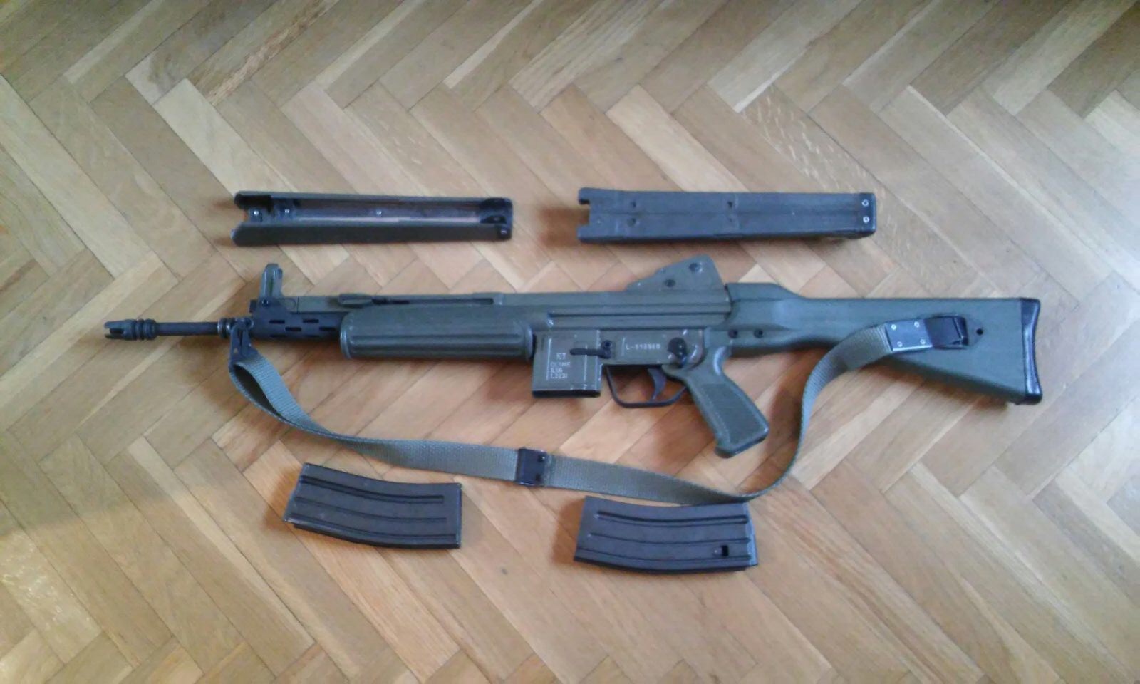 Buenas compañeros un amigo pone a la venta un Cetme L certificado de inutilizacion "BOPE" lo entrega con tres guardamanos ,correa porta fusa, y dos cargadores de 30 cartuchos, inutilizacion tres taladros en el cañon no visibles. 400€ El L esta en Madrid interesados contacten con Jesus 666810610 saludos