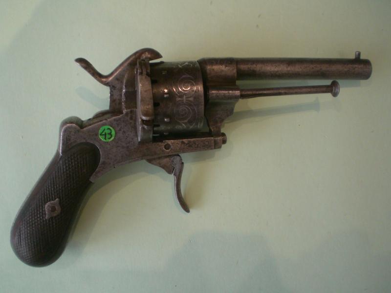 Vendo revólver sistema Lefaucheux de calibre 7 mm, inscrito en el libro de coleccionista, de 10 recámaras. Con filigrana en plata. Precio: 450 euros (portes incluidos).