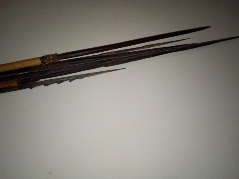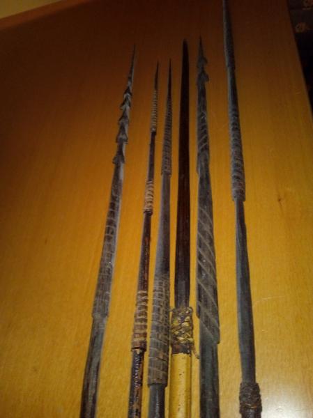 Arco "long Bow" de caza de la tribu Dani Dugum, con seis flechas talladas para diferentes presas Comprado en la EXPO de Sevilla. 80 euros portes no incluidos.