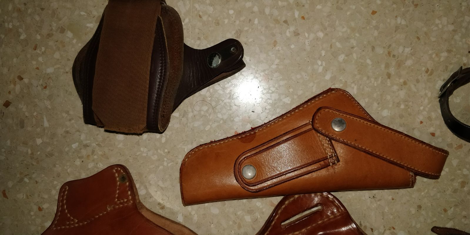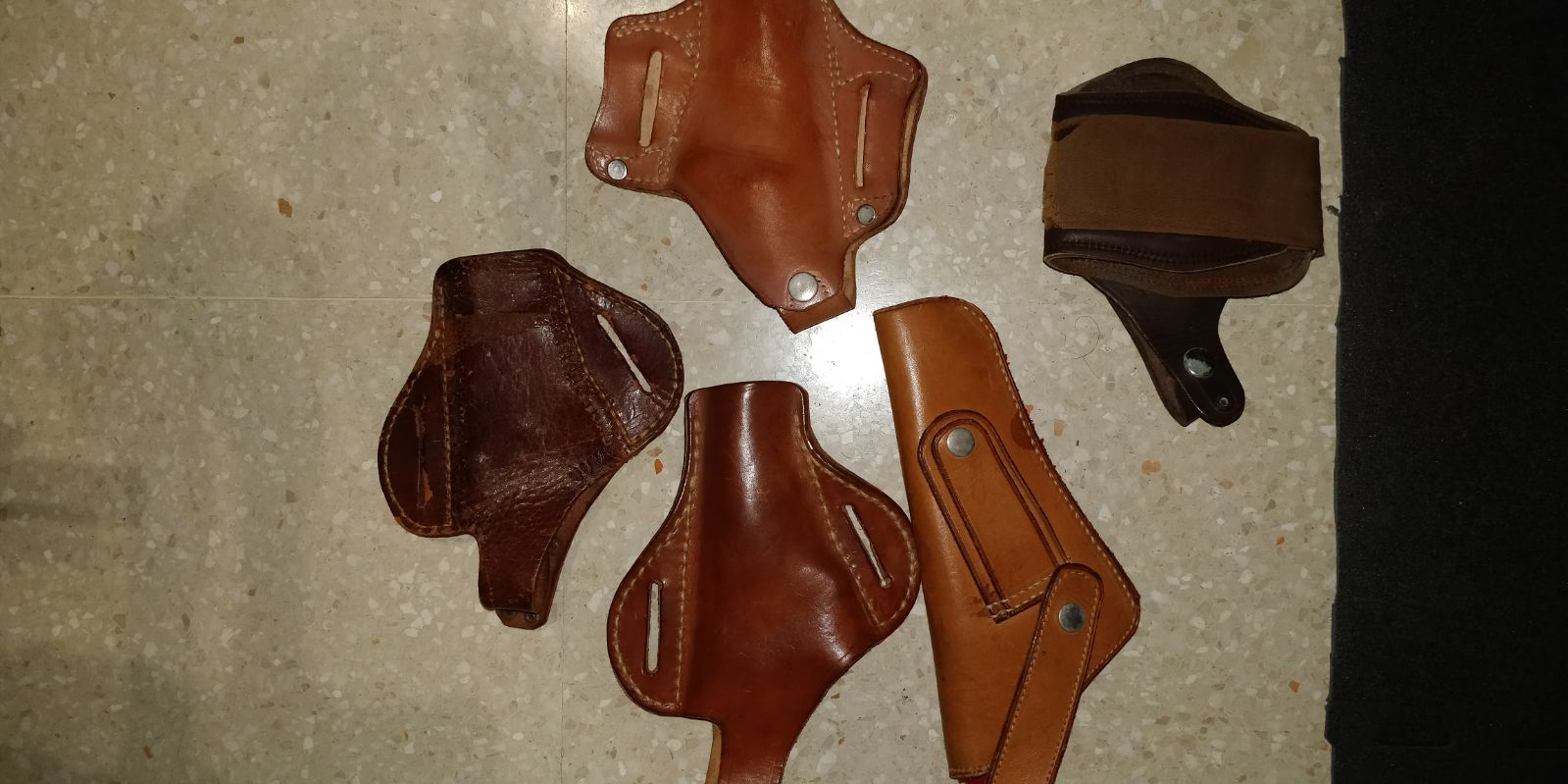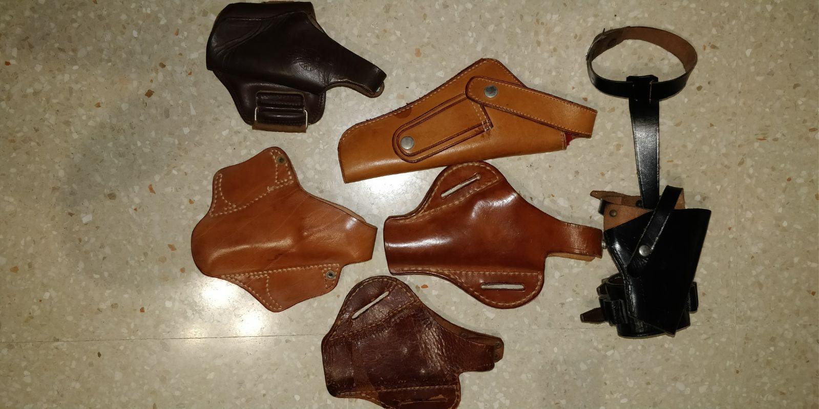 Vendo un lote compuesto por varias fundas de cuero tanto para revolver como pistola. Hay dos tobilleras, una tiene el broche roto. Las demas están en buen estado, no se exactamente para que armas son. Se pueden probar por al zona de Fuengirola y Málaga. Precio 50 euros todas. Hago envíos. Mi teléfono 680861238