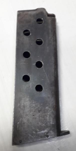 Cargador para la pistola Astra modelo 400 "Puro" de ocho cartuchos de capacidad del calibre 9 largo. Se encuentra usado pero en buen estado. Va numerado 12379 y marcaje redondo de Astra. Precio 35 euros con envío incluido a península y 30 euros entrega en mano en Madrid.