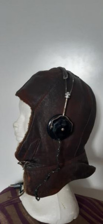 Antigua chichonera o gorro de aviador. De piel con forro de invierno. Incluye unos auriculares militares alemanes de baquelita marca Omega, de los años 30.