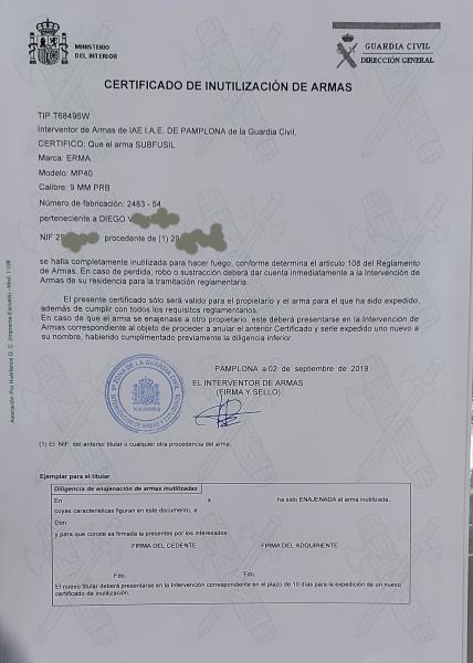 ZIPIROT escribió:MP 40 encontrado en una bodega en 2018. Pertenecia a un veterano de la guerra civil y miembro de la Division Azul fallecido en los 80. Se inutilizó en 2018 según la nueva reglamentacion, no hay que hacerle nada mas excepto la transferencia. Segun el marcaje de fabricó en 1940 en Austria por Steyr Daimler Puch, A.G. Werk. El cerrojo no está soldado, es movil. Incluye la correa de cuero original. Se vende por 2000 eus e incluye envio a toda España.