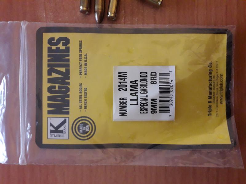 Se vende cargador nuevo para pistola Llama Especial del calibre 9 Largo. Fabricado en Estados Unidos por la empresa TripleK. Precio 65 €, portes incluídos. Tel. 62+879×49=61
