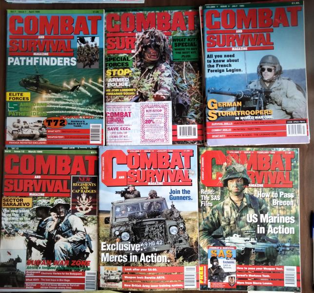 Excelente revista inglesa de lso años 90 con armas, conflicto, técnicas y tácticas de combate, supervicencia y material de surplus y coleccionismo.