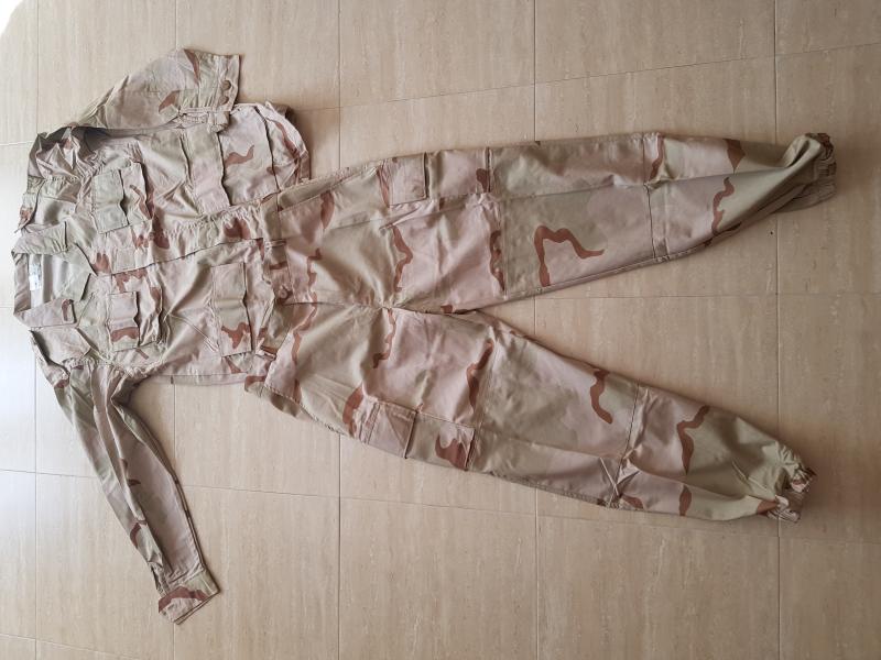 Nuevo. Sacado de la bolsa para hacer la fotos. Uniforme árido desierto. Talla XL. Chaqueta Axila a Axila 60 cm. Pantalón cintura 47 cm. Posibilidad de envío correo certificado.