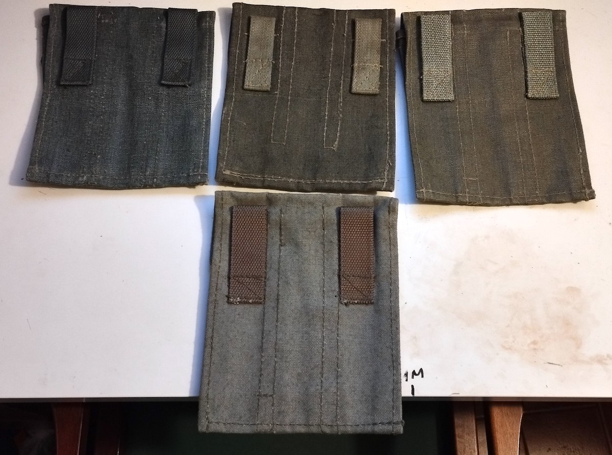 Hola. Vendo estas bolsas para el cinto, diseñadas y fabricadas en la antigua URSS para portar cada una tres cargadores (no incluídos) del subfusil PPS-43. Son de posguerra y procedentes de arsenal. Sin uso.
