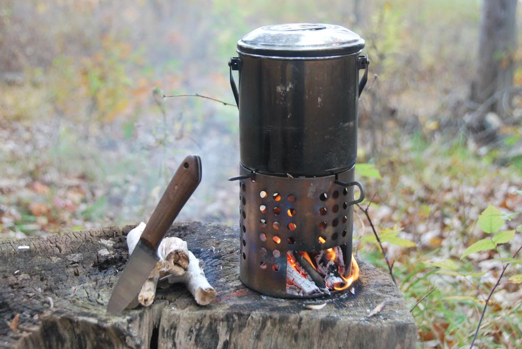 Olla para BUSHCRAFT / camping del fabricante ZEBRA en acero inoxidable con 1500 ml de capaciad, en tres piezas, puede usarse en fuego y vitroceramica.