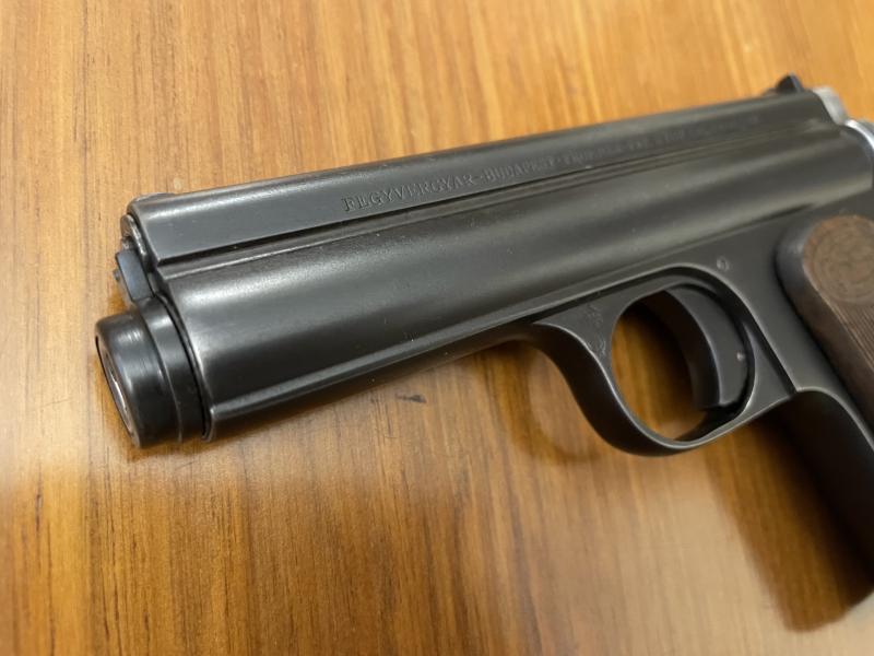 Se trata de una pistola Frommer M1912 conocida también por la denominación Frommer Stop. Para no hacer el anuncio demasiado tedioso, os facilito un enlace de este mismo portal donde se habla de la historia de esta curiosa arma, cuyo rasgo técnico más peculiar es el empleo de un sistema de retroceso largo más propio de armas largas (Browning Auto5, Remington Model8) que cortas, siendo las pistolas diseñadas por Rudolph Frommer verdaderas excepciones a la norma. Aquí tenéis el enlace: https://www.armas.es/armas-y-accesorios ... on-hungara