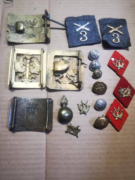 Conjunto de hebillas, botones e insignias del ejército español