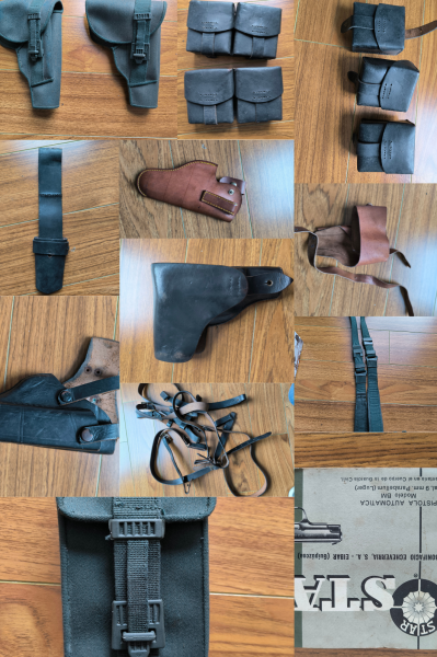 Pongo en venta lo de la foto, portamunicion, funda de cargador cetme, diversas fundas de pistola de cuero y lona, manual Star BM, Tahali para bayoneta...