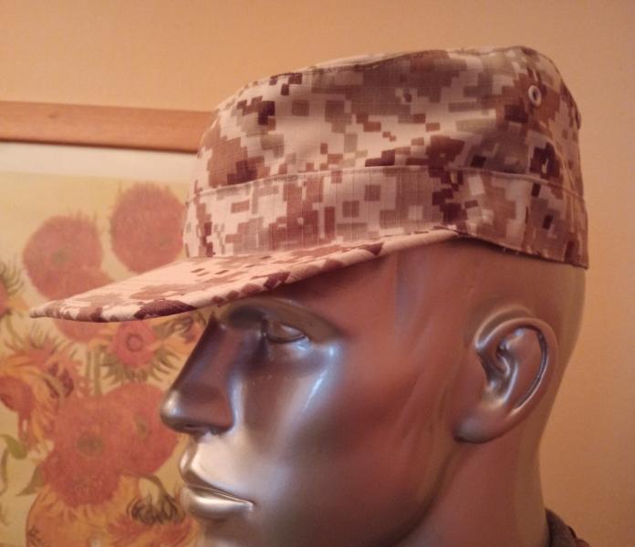 Lo dicho. Dispongo de gorra de los MARINES de U.S.A. totalmente nueva, sin uso. Camuflaje digital. Es en color desierto.Talla 60. 65% poliéster y 35% algodón. Tiene 6 taladros con agujeros de 3mm de diámetro aprox para refrescar la cabeza.