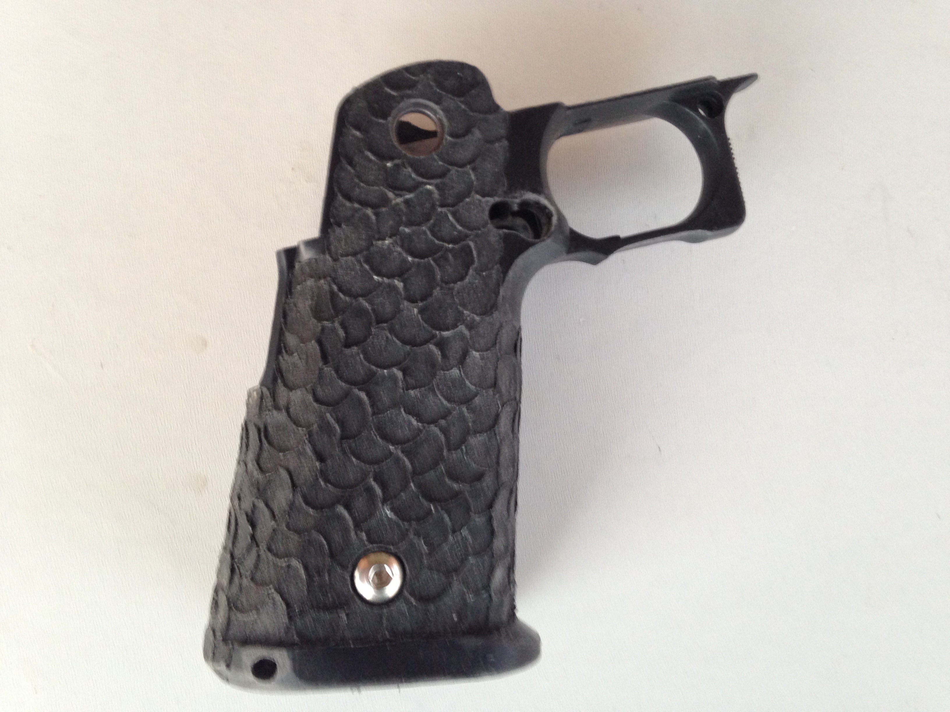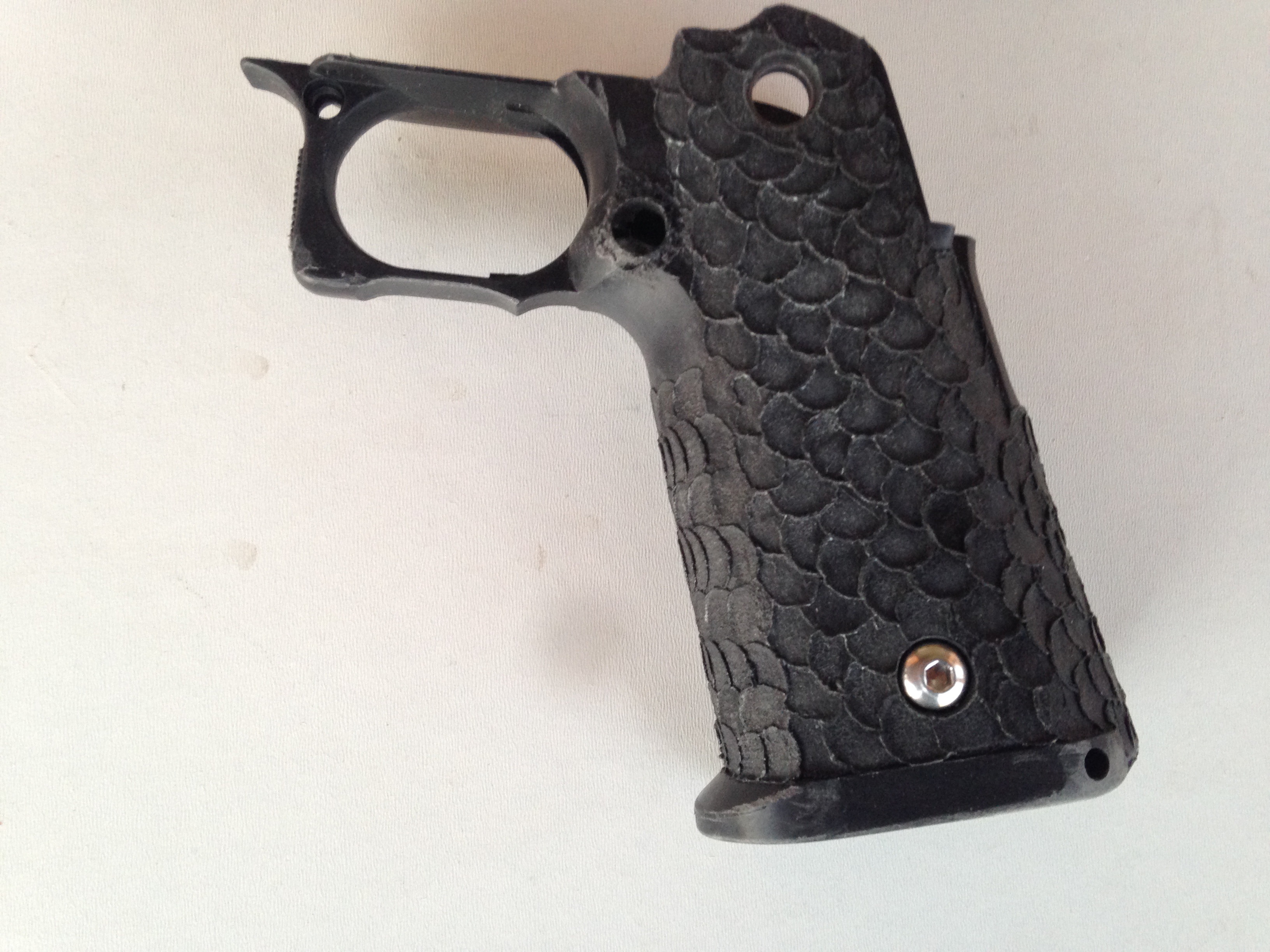 Excelente agarre, size Medium-Small, doble hendidura bajo el guardamontes, magwell incorporado.