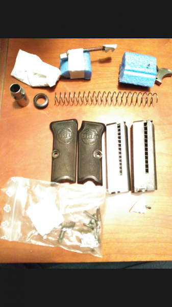 Vendo el despiece completo de esta pistola. Dos cargadores. Cachas de pasta. Un pasador pequeño en L, de la empuñadura creo que era, se rajo al sacarlo. No se nota pero lo aviso está rajado.