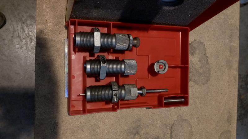 Uno marca Hornady del calibre 45LC con lo tres dies, el shell holder y se entregan