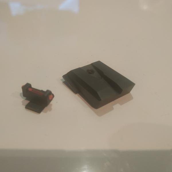 Miras originales de una S&W MP9 PRO...La de fibra és la delantera....no se si es lo que buscas.
