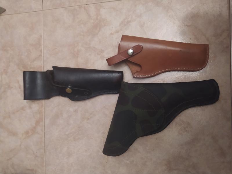 Vendo estas tres fundas ( dos de revolver y una de pistola).