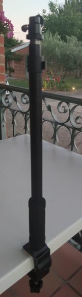 Vendo soporte vertical para telescopio. En mi caso lo tengo puesto en un visor DGJ 30, así q soporta muy bien cualquier telescopio de características similares. No lo he probado sobre telescopios de mayores proporciones. Tiene dos tramos de 45 cm, por lo q apertura total son 90cm. Incluye funda de transporte de lona negra.