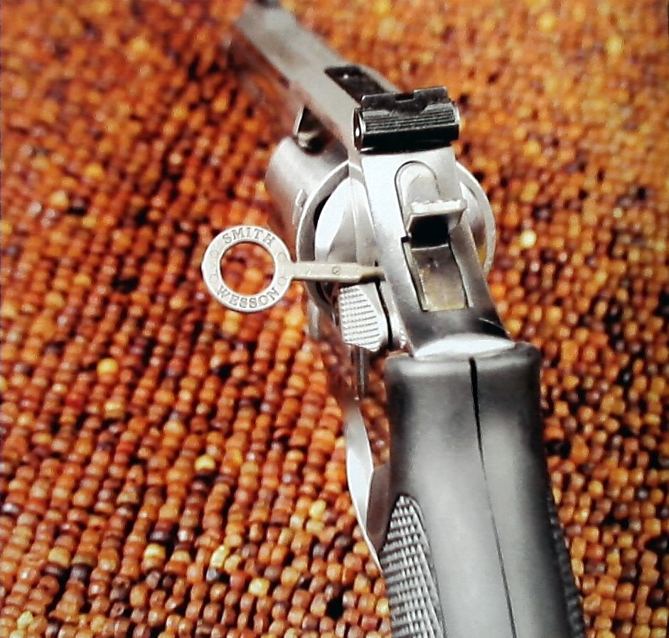 Busco la llave que llevan los revólveres Smith and wesson modernos para accionar el seguro, como la de la foto