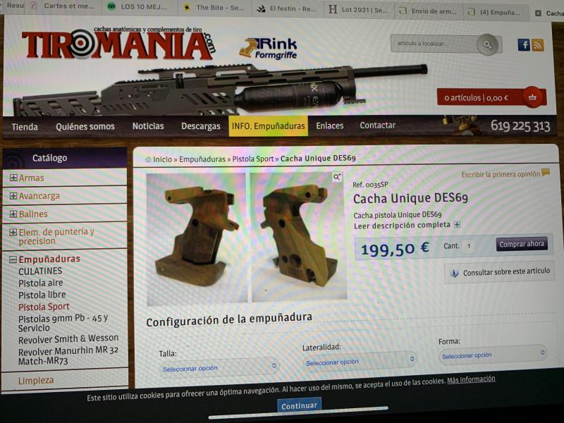 Estoy buscando para comprar una empuñadura/cachas para tirador zurdo, de la pistola para la modalidad de Stantard en cal. 22, marca UNIQUE, francesa, del modelo "DES 69" correspondiente a Septiembre de 1977.