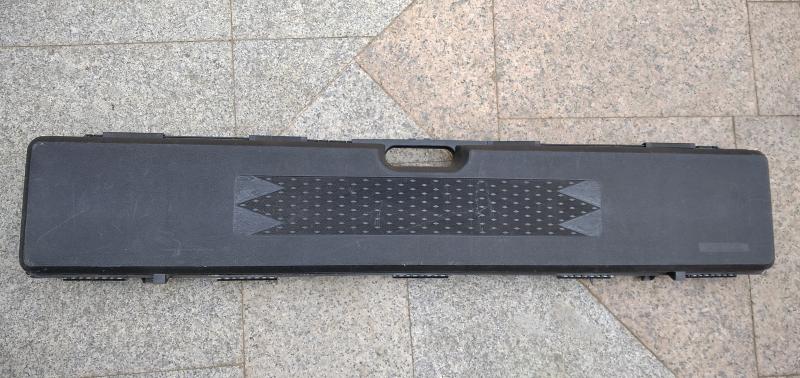 Maleta rígida para transporte de armas largas Material plástico, bisagras cierres y espuma en buen estado. Medidas interiores 132*23*9.5cm.