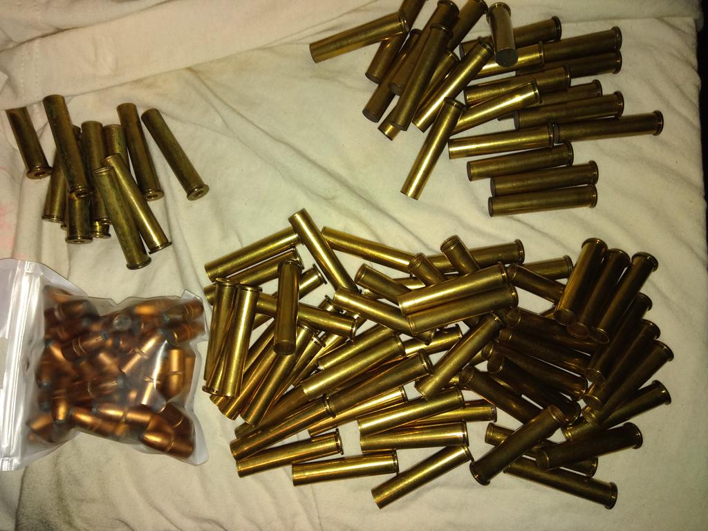 Hay 12 vainas de ellas que tienen algo del verdín de haberlas llevado en canana de cuero, y las puntas son de 200 grains, excepto 8 que son de 250 grains.