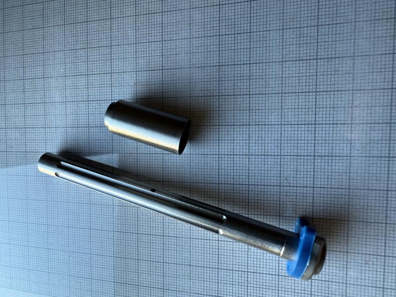Guía acanalada muelle recuperador larga para armas 1911/2011 de 5” , en acero inoxidable , acanalada para aligerar peso . Acabado espectacular de gran calidad con su manguito . Se regala el amortiguador .