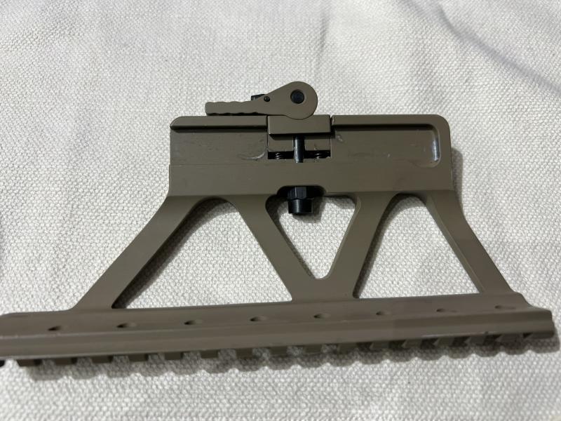 Vendo soporte para colocar visor con rail picatinny en Rifles y escopetas Saiga, Molot y Kalashnikov de la casa Midway industries en color Tan y en perfecto estado.