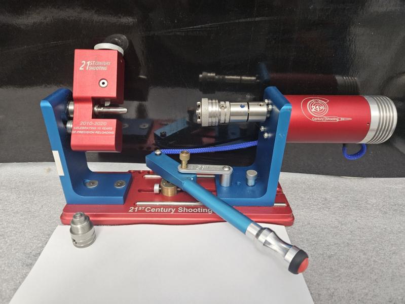 Vendo torneador de cuello electrico marca 21st century innovation y medidor de concentricidad de la misma marca. Marca americana, de los mejores productos que se pueden encontrar para este fin. El torneador viene montado para el calibre 6,5 mm pero se puede comprar en su pagina web pilots para el resto de calibres con envio a domicilio sin problemas en España. El torneador se suministra con dos pilots, uno para tornear y otro para tornear y recortar vaina. Precio del torneador 550€ y precio del medidor 250€, si se adquieren juntos serian 700€ ambos + portes.