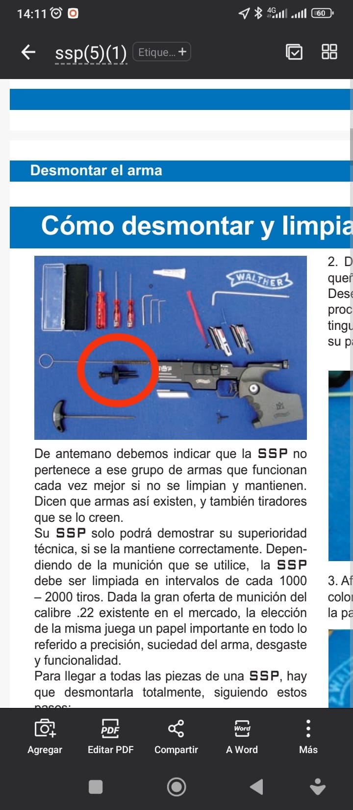 Compañeros, alguien que me pueda ayudar, necesito herramienta de desmontaje walther SSP. Es una pieza de plástico redondo con dos puntas, intento subir foto.