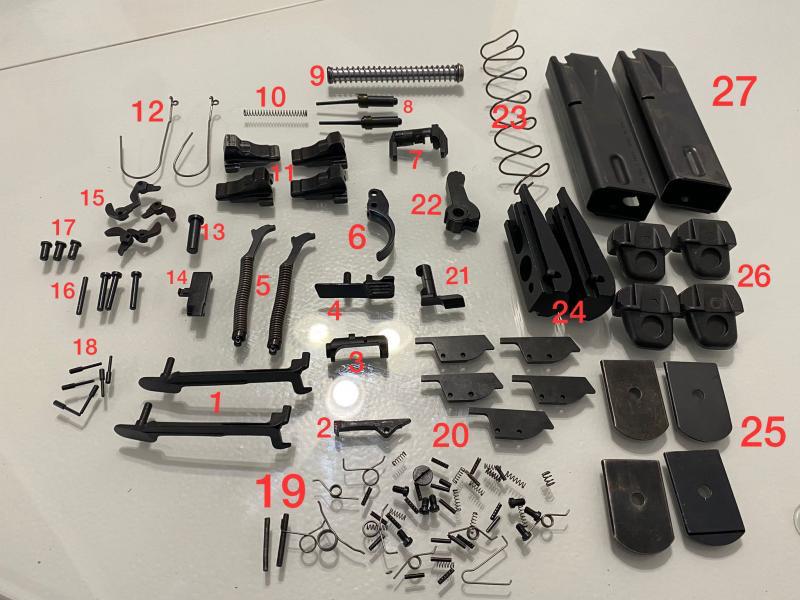 Piecerio vario NO fundamental de llama m82 nuevo, 1. Lanzadera J-240 25€/ 2.uña extractora J-210 25€/ 3. Reten del cargador J-420A 25€/4.palanca retenida J-280 25€/ 5. Palanca muelle del martillo J-340 25€/ 6.disparador J-300 25€/7.mecanismo seguro J-150, aleta derecha seguro J-160 25€/ 8. Aguja percutora J-180 35€/ 9. Muelle recuperador J-140 25€/10. Muelle percutor J-190 5€/ 11.Rampon J-130 40€/ 12. Muelle seguro del cargador J-430 5€/13. eje martillo J-330 10€/ 14.Fiador J-350 15€/ 15. Desconector del fiador J-380 10€/ 16. Eje del disparador J-310 5€/17.eje Percutor interno J-200 5€/ 18.desconector de la lanzadera J-270 5€/ 19. Pasadores muelles etc 5€ unidad con el codigo y la foto se encuentra. 20.Expulsor 10€/ 21. Palanca de desarme J-400 25€/ 22. Martillo J-320 25€/ 23. Muelle cargador 5€/ 24. Soporte muelle del martillo J-450 25€/ 25. Tapa cargador, 5€/ 26. Teja cargador 5€/ 27. Cuerpo cargador 10€. Jesus 666 81 06 01 venta en Madrid se hace precio por todo 650€ Se atiende Whatsapp y llamadas