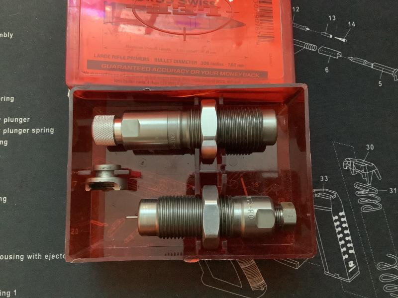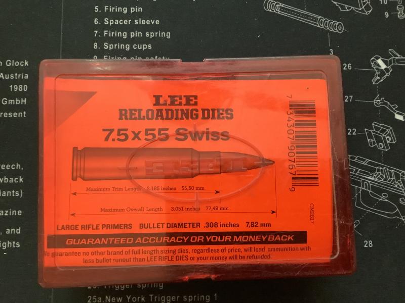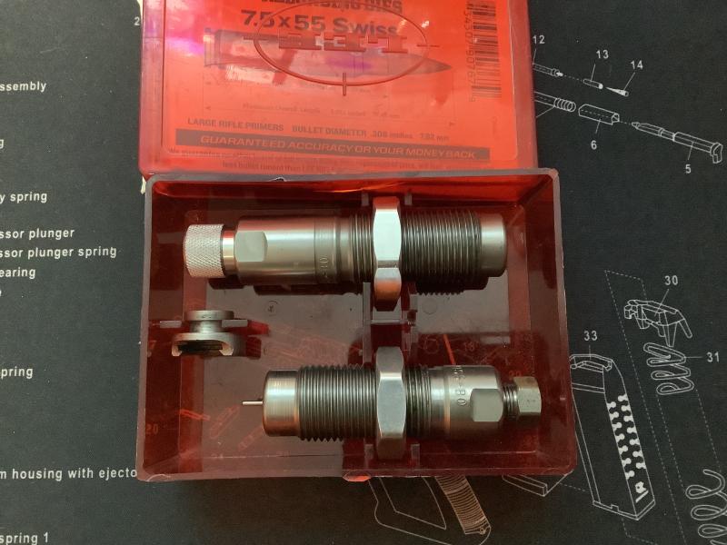 Se vende juego Dies de 7.5x55 Swiss de la marca Lee, usados en buenas condiciones,el precio es de 35€ más gastos de envío, se pueden entregar en mano en Madrid o Guadalajara .