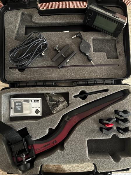 Vendo mi cronógrafo electromagnético de bayoneta para rifles (incluye accesorio para Glock 17). Sirve para medir la velocidad en boca de puntas de municion sin que influya la luz ni la hora solar, y evita tener que invadir el área de tiro de la galería. Ideal para recarga.