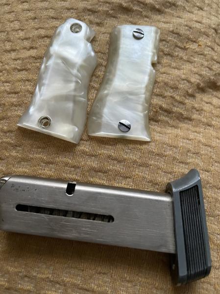 Se venden cachas nacarina con tornillos cromados . Para pistola Star dkl. 38 euros puesto en destino (península). Contactar en moterovespero@hotmail.com En su caso pago por Bizum. CARGADOR VENDIDO