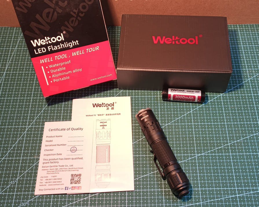 Vendo linterna WELTOOL T2 version Elegant Phanter, en estado nuevo, sólo estrenada, con una única carga de batería (incluye batería 18650 y cargador).