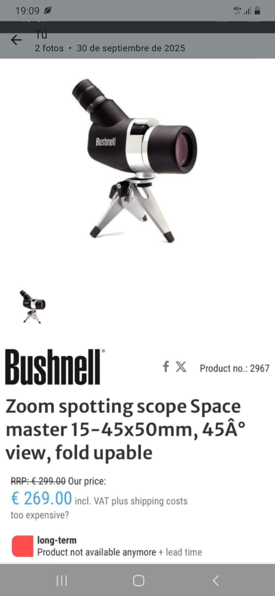 Visor spotting Bushnell 15-45x50 y gafas de tiro Knobloch K1. Por los dos pide lo que cuesta uno de ellos, 275 euros.