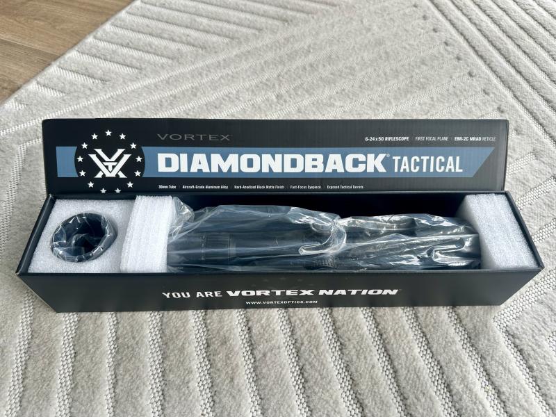 Se vende Vortex DiamondBack Tactical FFP 6-24x50, con retícula táctica en primer plano focal y tubo de 30.