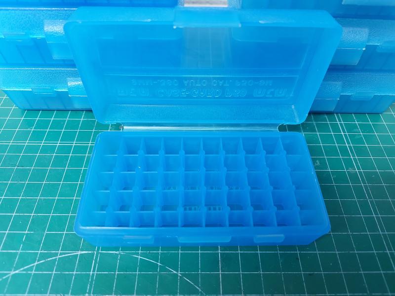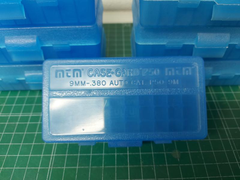 Vendo lote 10 cajas munición MTM Case-gard P50-9 validas para los calibres 9 corto, 9 mm pb y .32 SW.