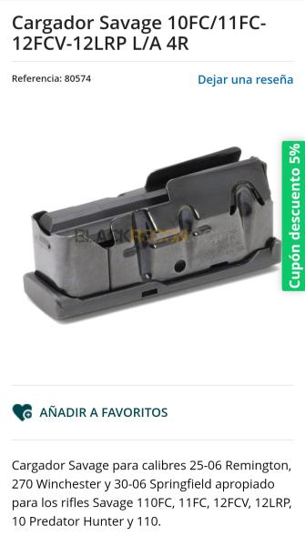 Re: Cargador Rifle SAVAGE 110FC, 11FC, 12FC, 12LRP, 10 Predator Hunter y 110