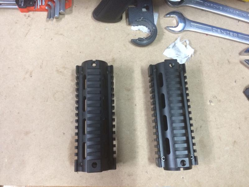 Pongo a la venta dos guardamanos con railes. Venían montados de serie en los Schmeisser, se encajan entre la rosca del cañón y el gas block.