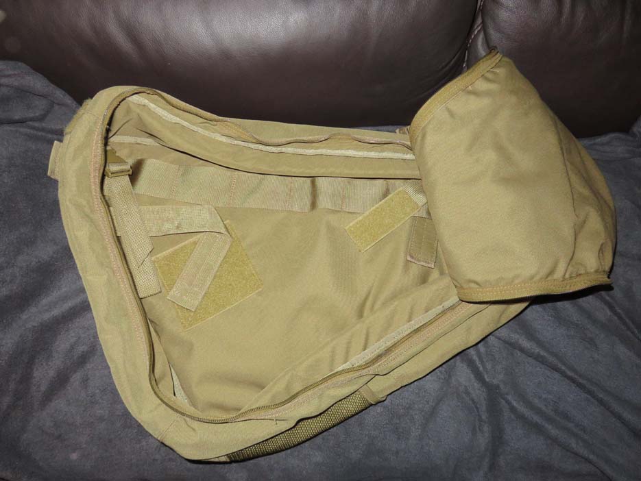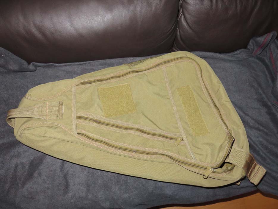 Está concebida para llevarse a la espalda. Cuando se necesita el arma se da un giro para posicionarla delante, con facilidad, y se activa una cinta para abrirla con rapidez y que quede el arma disponible. Incluye refuerzos acolchados para hacer más cómo llevarla y bolsillo para situar placas antibala, haciendo que la bolsa sea también la protección del portador.