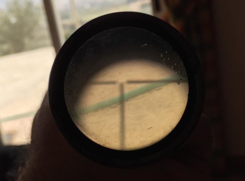 Es uno de los clásicos 4x50, con la cruceta típica alemana de entonces y ajuste sólo en alza (como todos). El ajuste en deriva se efectúa con el tornillo "ex professo" de la montura.