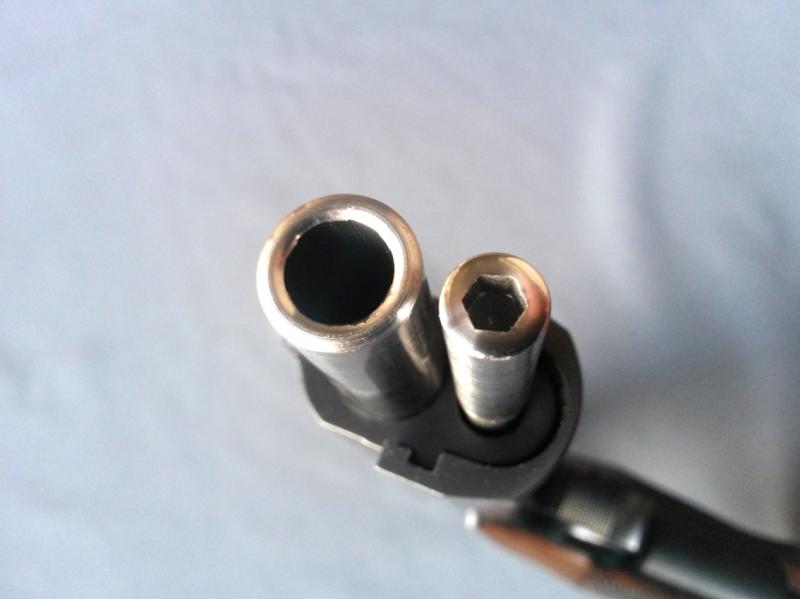 De tal forma, os presento esta guía pesada, que aumenta el peso del arma justo donde lo necesita. La guía original del arma pesa 40gr., mientras que ésta pesa 80gr. Está fabricada en Tungsteno, con las partes adicionales precisas en acero F127. La guía está compuesta de dos piezas y respeta escrupulosamente las cotas de la guía original en cuanto a su fijación y diámetro para el muelle. Se coloca con extrema facilidad, tan solo con la ayuda de una llave allen 4 y para nada varía ni interfiere en el funcionamiento mecánico del arma. En las fotografías podéis verla colocada en mi Supertarget.