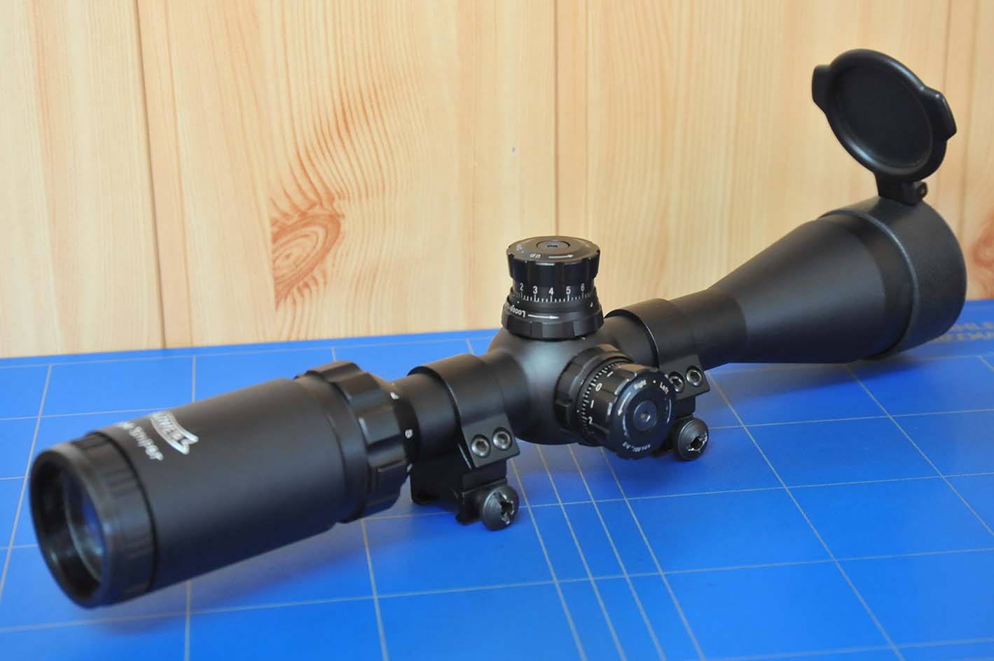 El visor se entrega tal como se ve en las fotografías, con una tapa el la parte de objetivo y con unas anillas para carril weaver o picatinny de 20mm.