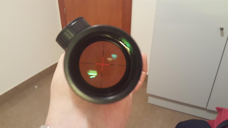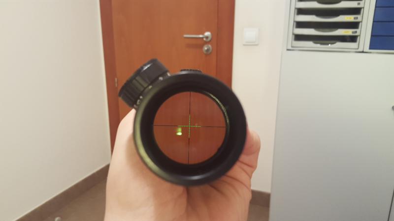 Retícula Mil Dot real a 10 aumentos, iluminada en verde/rojo.