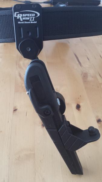 Se vende funda de ipsc CR SPEED WSM II para pistola glock, con tres portacargadores de la marca Double Alpha y cinturón de la talla 38 (120 cms.) Todo usado en unas 15 tiradas. El precio es de 100€ más los gastos de envio.