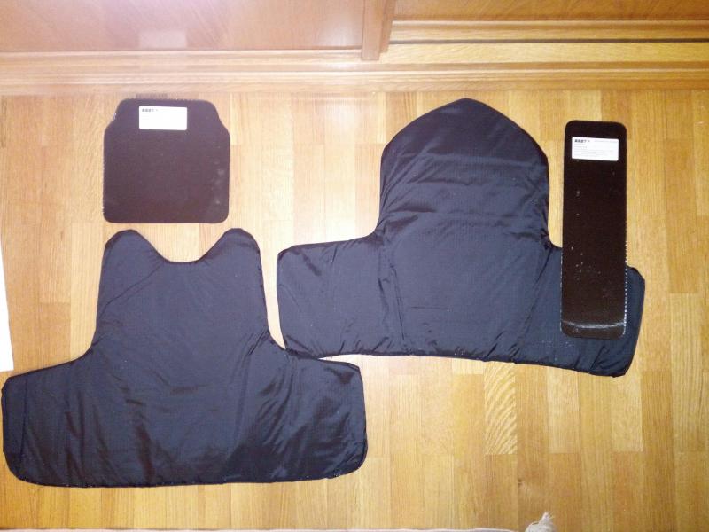 Chaleco antibalas MARCA BSST, modelo PM 6.1, sistema de protección SK1, certificación BA Ulm S040057, con placas de protección Dynema. Además trae muy importante placas antitrauma en la colunma y en el pecho parte del corazón, para evitar lesión por trauma.