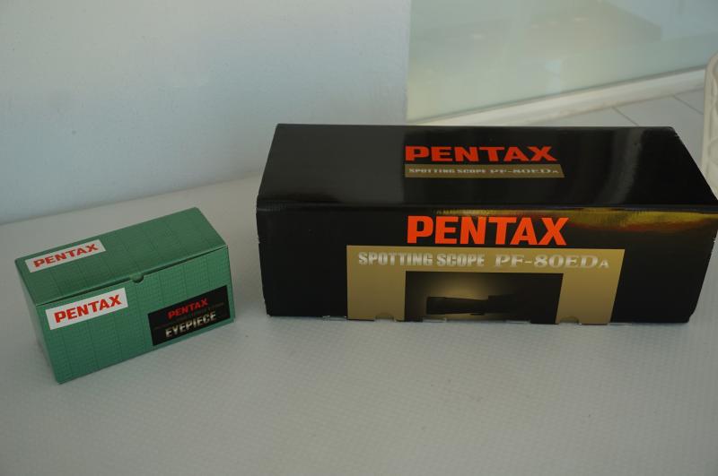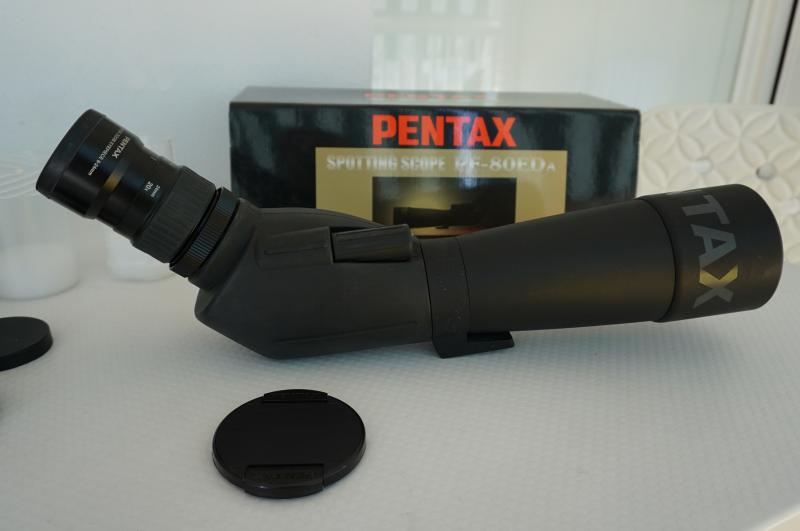 La Pentax PF-80ED-A Spotting Scope es un instrumento óptico grande y muy impresionante, con un objetivo de 80mm brillante y la capacidad de aceptar cualquier 1.25" ocular de Astronomía así como filtros de 82mm en la parte delantera del objetivo. Es 100% impermeable y resistente a la niebla, con armadura de goma durable en una carcasa metálica que tiene un collar del trípode rotatorio con paradas con centro marcado cada 45°. La óptica completamente multicapa tienen proceso multicoating de bien considerado SMC de Pentax y un elemento de cristal ED (dispersión extra baja) ayuda a proporcionar la delineación del borde de maquinilla de afeitar-agudo a los sujetos de alto contraste.
