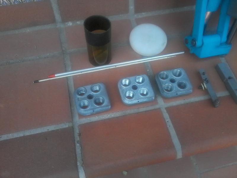 4 platos soporta casquillos del 32 , 38, 9 pb, y 45 ACP ( el del 38 un poco tocado)y sus sistemas de empujar para polvora que es a la vez para abrir el casquillo.